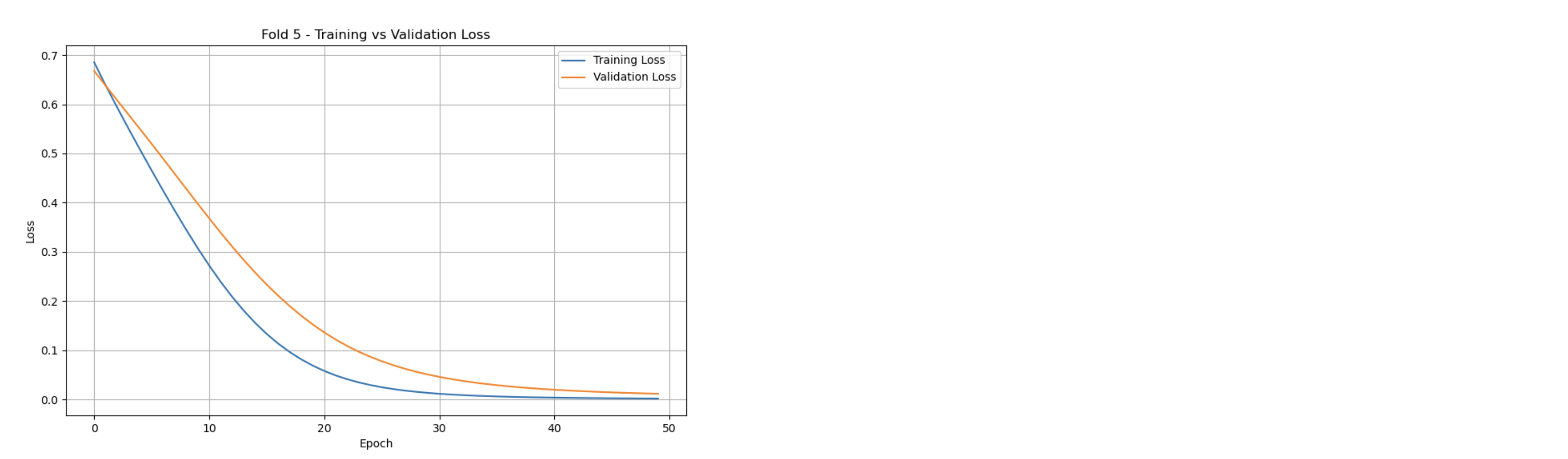 A 5-Fold Cross-Validation strategy was used to generate training & validation sets to prevent overfitting and assess the influence of geographical data from varying regions on water quality predictions. The model was trained for 50 epochs with a learning rate of 0.0001, optimized with a Binary Cross Entropy to penalize incorrect classifications. Validation and training loss rates were traced at every two epochs for monitoring performance as the model learns.